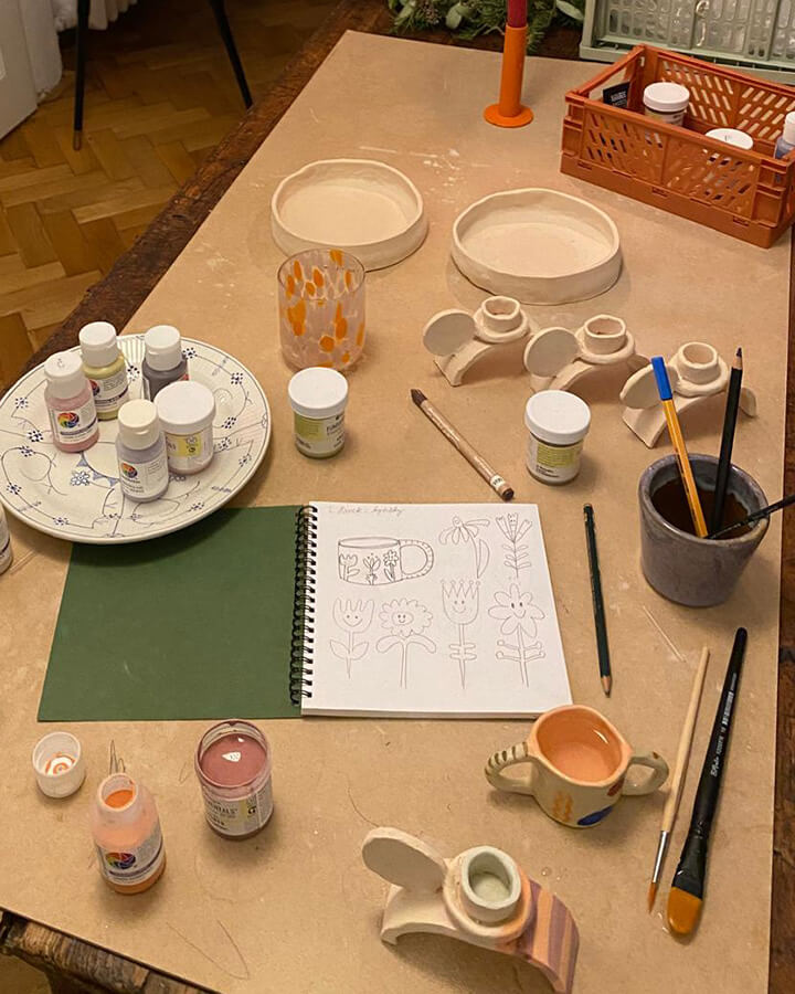 Každý kousek prošel rukama herečky a maminky tří dětí Terezy Švejdové – od prvního doteku hlíny až po poslední tah štětcem.