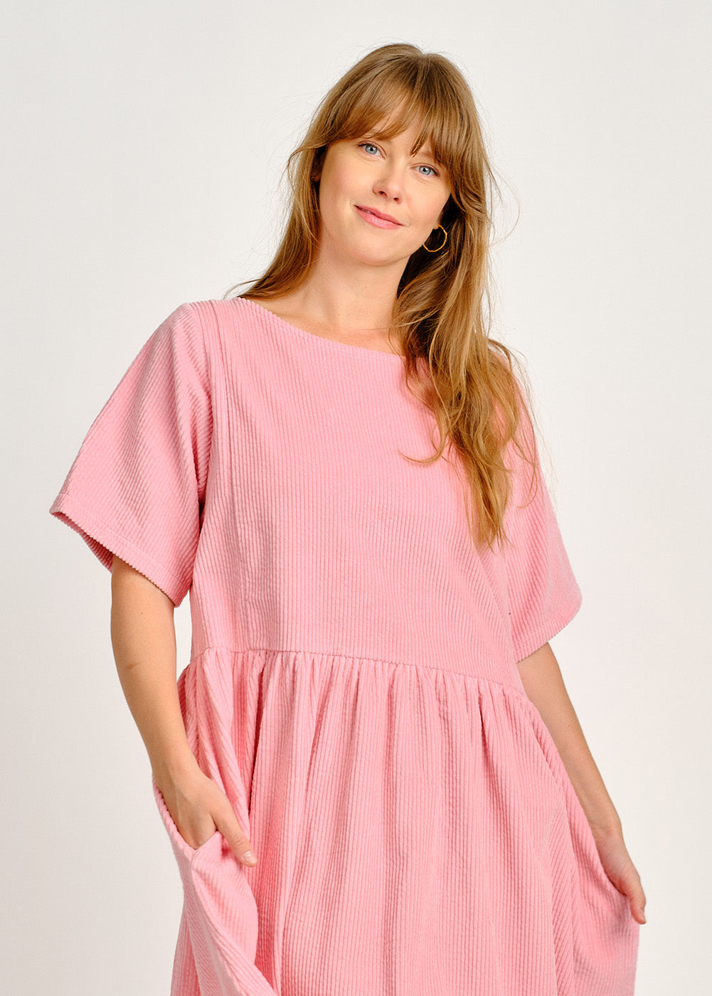 Sladká růžová jako obláček cukrové vaty. Hebký manšestr, kapsy a ženský střih, který zjemní tvůj vzhled a rozjasní den.