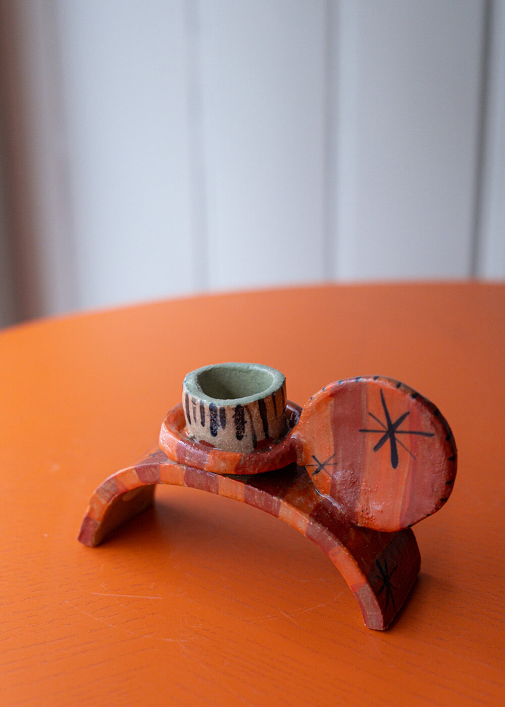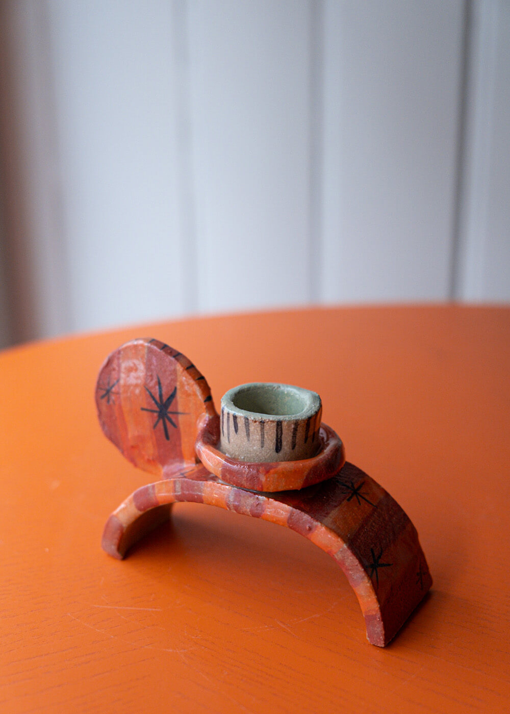 Ručně vyrobený keramický svícen s obloukovým tvarem připomínajícím vlnu. Originál vytvořený herečkou a maminkou Terezou Švejdovou. Pouze jeden kus.